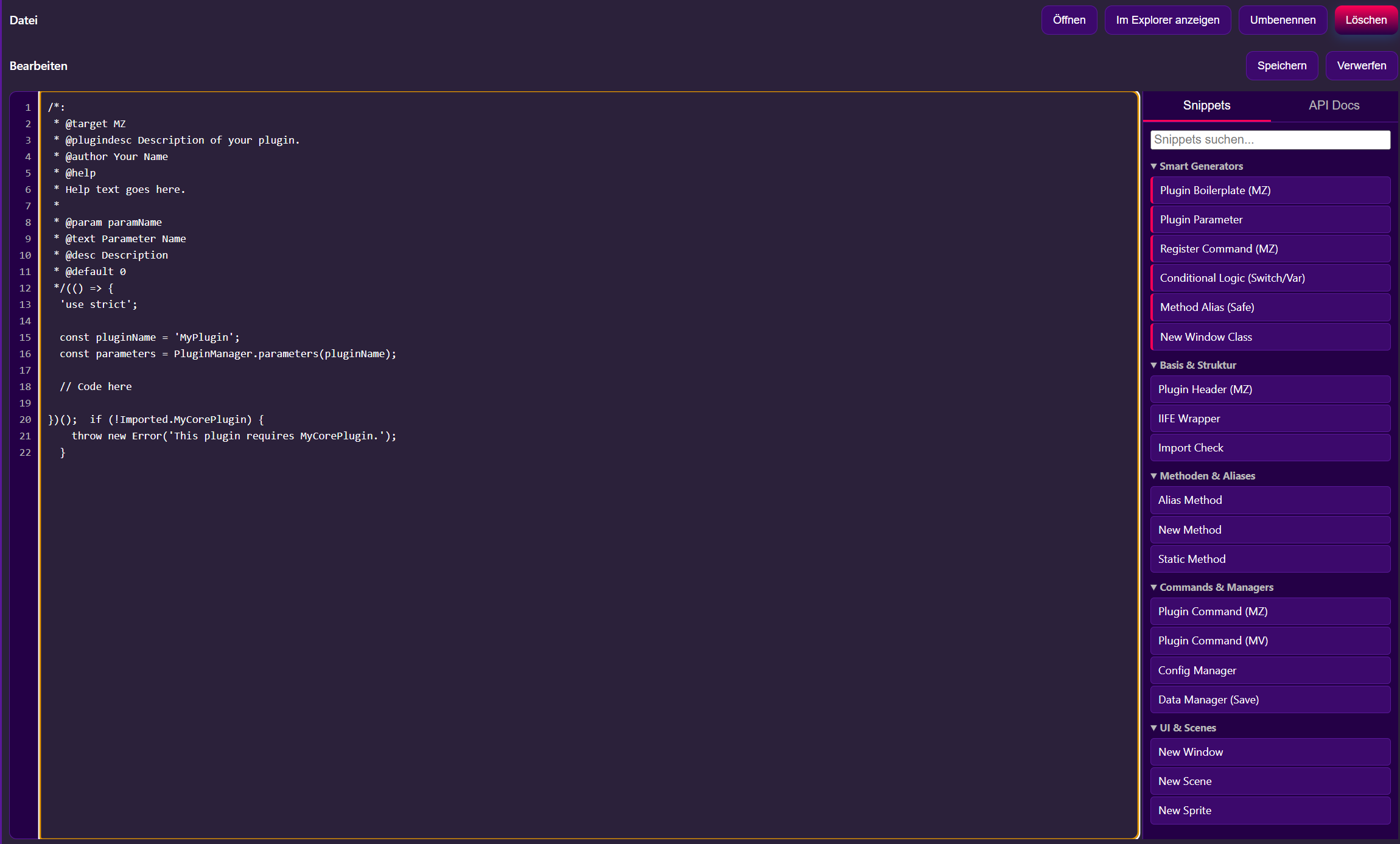 Das Tool sieht echt genial aus, hab schon oft und gerne euren Plugin Builder verwendet, weil es beim Pluginschreiben eine Menge Kopierarbeit erspart. Erst vor ein paar Tagen hab ich mir gedacht es wäre echt toll, wenn ich die Datenbank auch außerhalb von RPG Maker MZ's Interface bearbeiten könnte, um mir das ständige hin-und-her Klicken im Editor zu ersparen. Ich hab zwar schon einige Tools gesehen die dies oder das machen, aber dann hat man erst recht wieder fünf Fenster offen... Das Feature-Set hier wirkt so als ob es genau für meine Projekte passen würde.