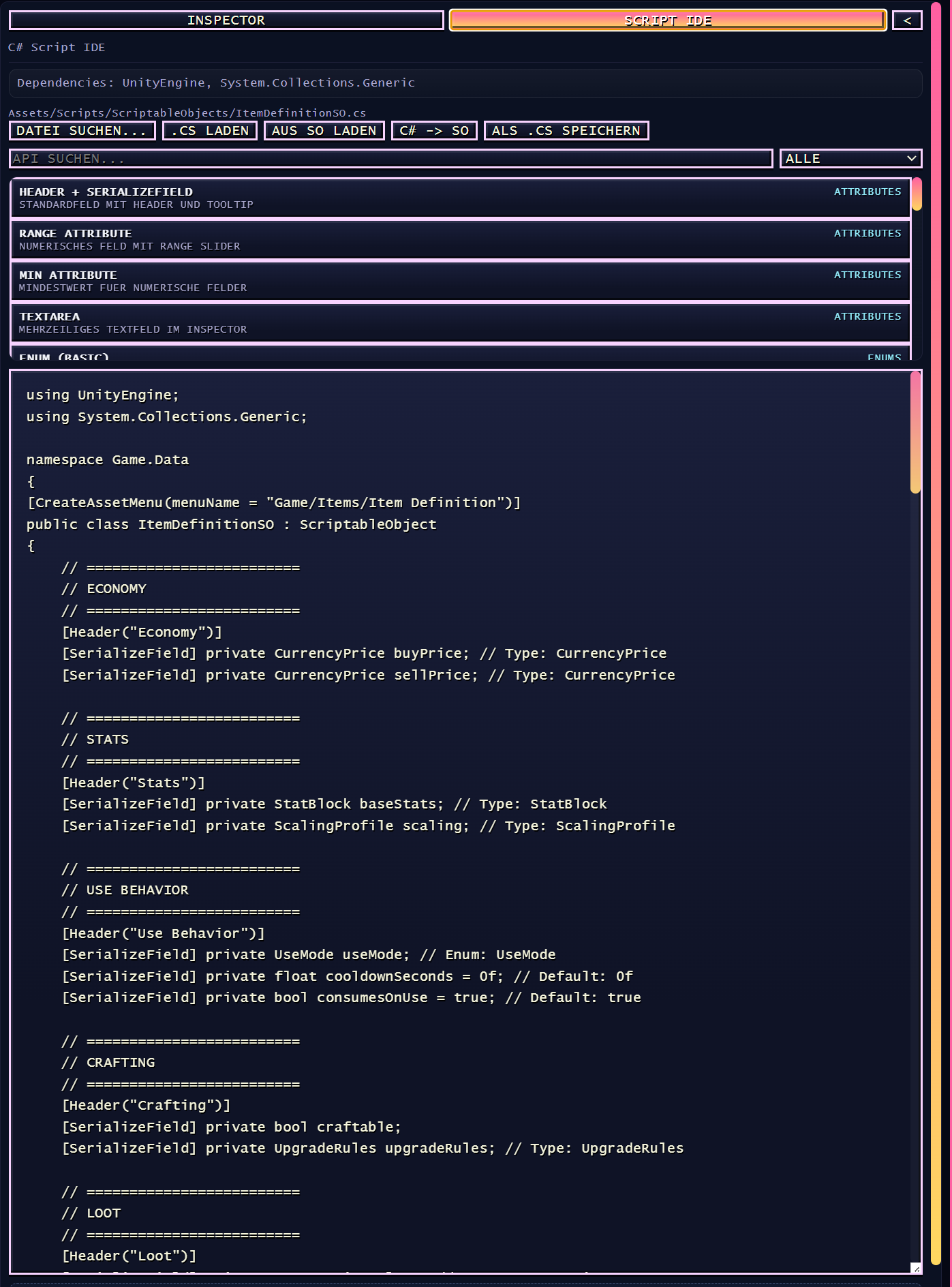 🔧 Unity ScriptableObject IDE ⭐ NEU in v2.0.0