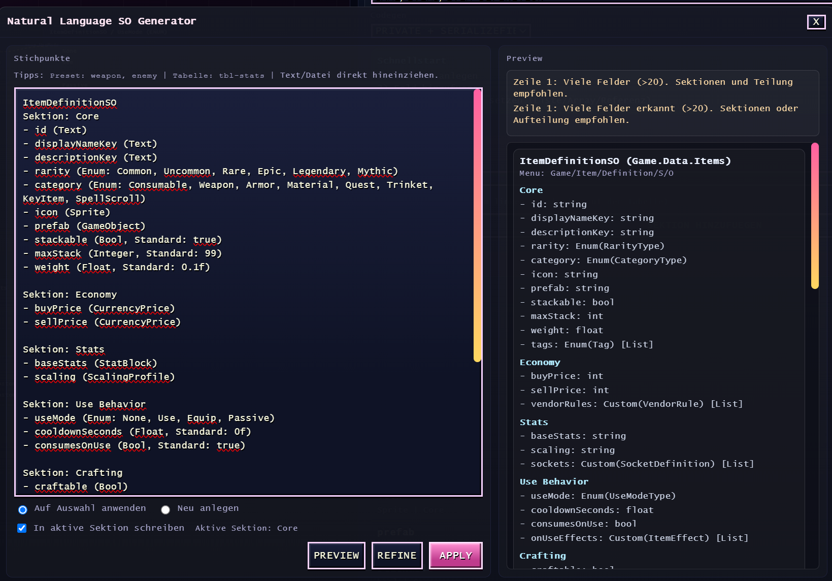 Das Hauptfeature dieser Version - Erstelle Unity SOs visuell!