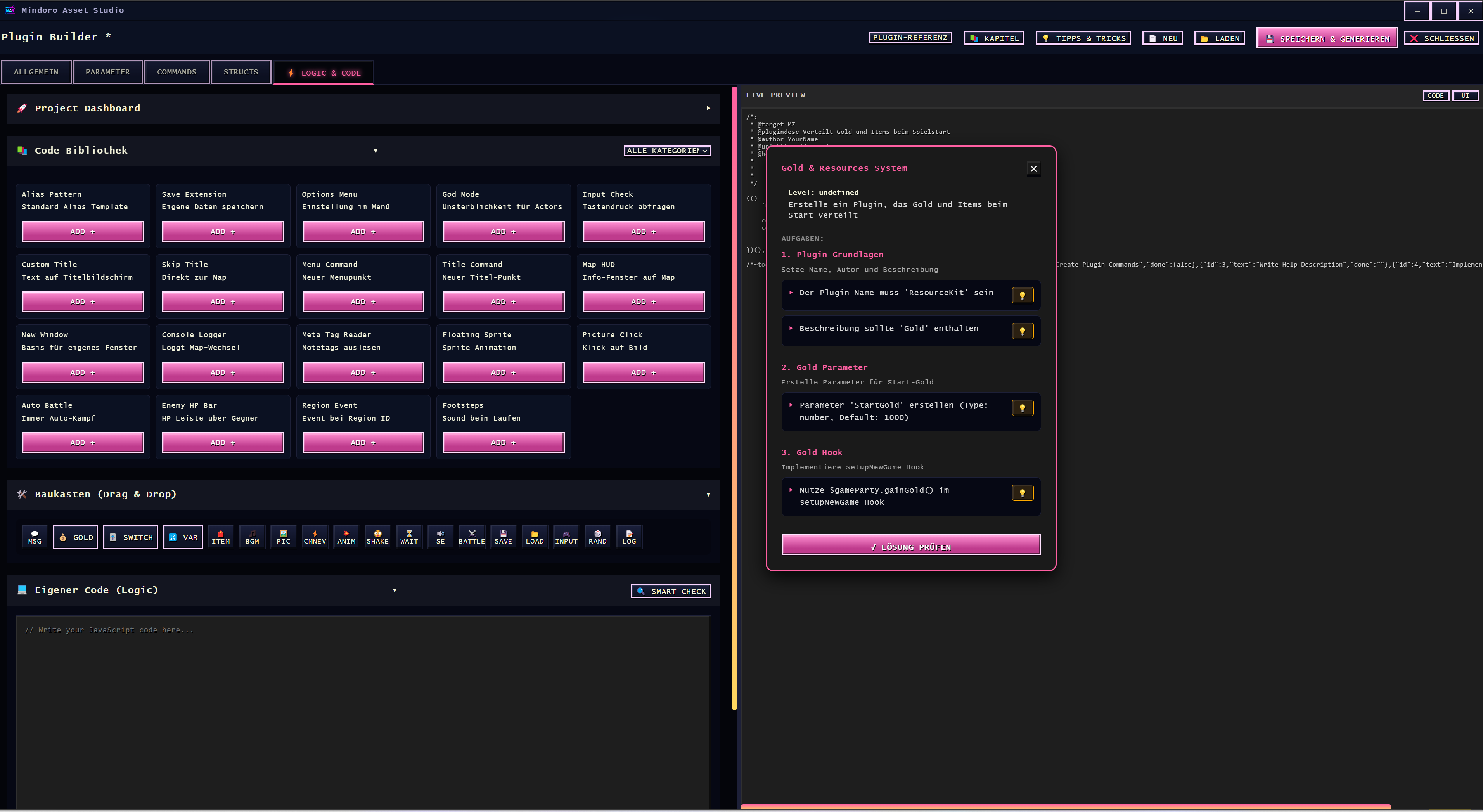 Hey, thanks for your message – and sorry for the late reply! Your comment this morning actually sparked a few new ideas. I’ve updated the Plugin Builder so that beginners can create their first plugins much more easily. I also added a new chapter-based feature where you learn step by step through small tasks, even if you’ve never written a single line of code before.